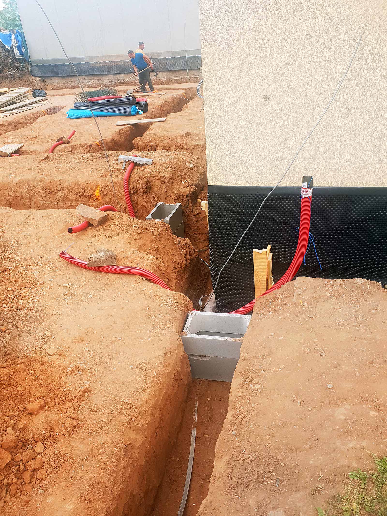 Budujeme inženýrské sítě, často jako přípojky rodinných domů. Rádi vám dodáme i zámkovou dlažbu, betonový nebo asfaltový povrch.